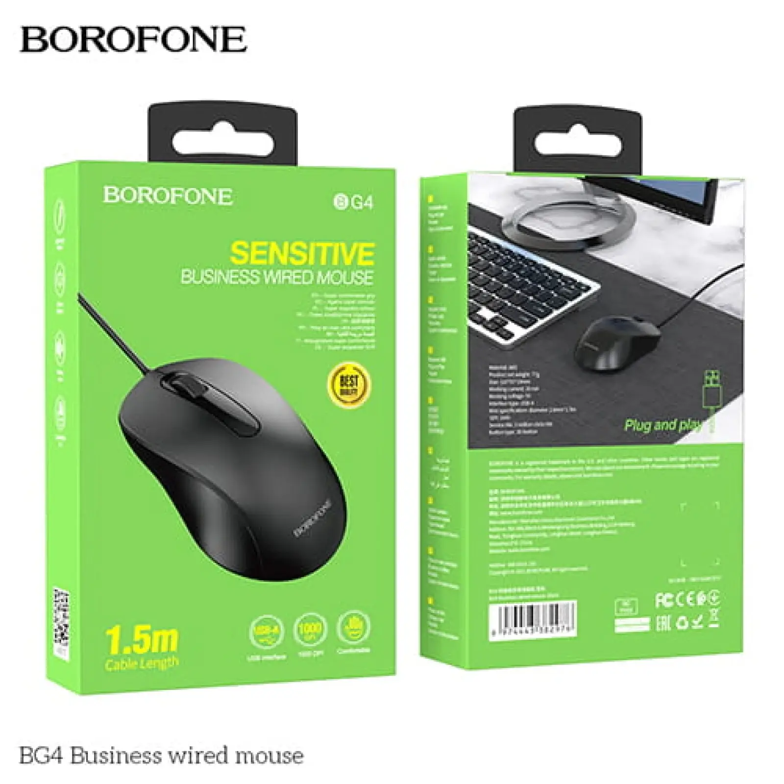ماوس بروفون مدل Borofone BG4 یک ماوس سیمی سبک و خوشطراحی است که برای کاربری روزمره، اداری و حتی بازیهای سبک مناسب میباشد. طراحی ارگونومیک و دکمههای روان آن باعث میشود دست شما در استفاده طولانیمدت خسته نشود. این ماوس با اکثر لپتاپها و کامپیوترها سازگار بوده و بدون نیاز به نصب نرمافزار اضافی، از طریق USB قابل استفاده است.